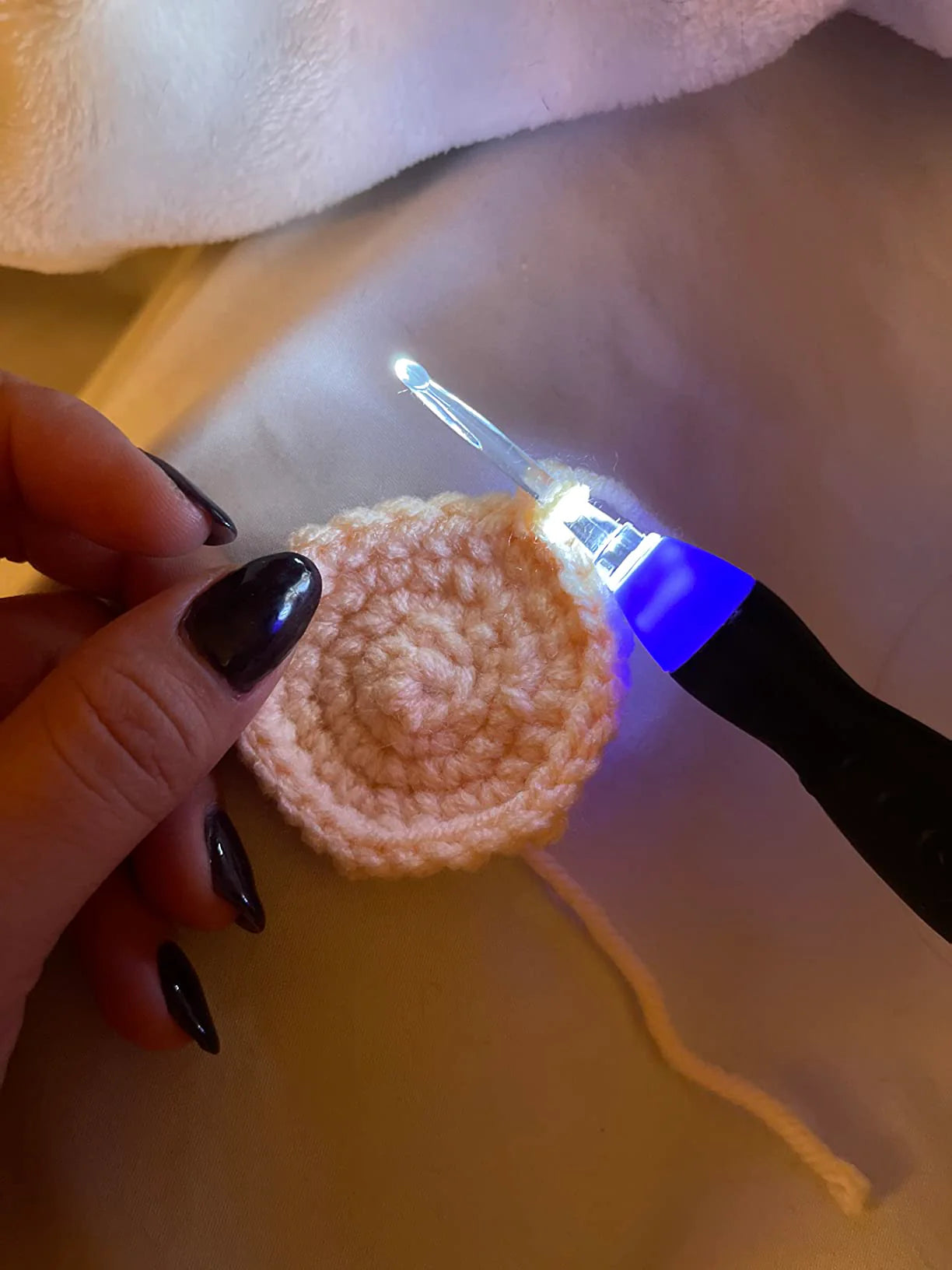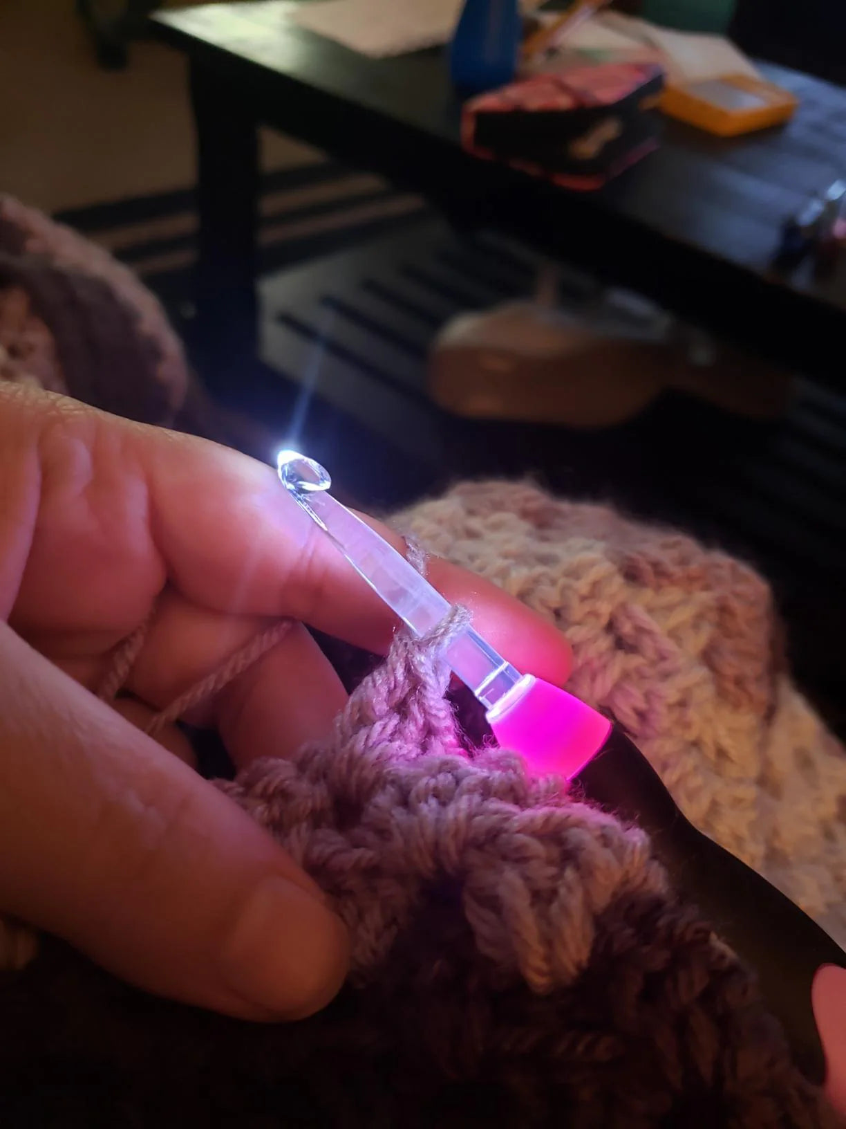 Sit comfortably and crochet at night! This hook makes it easy to see every stitch clearly, so you can enjoy crocheting anytime, anywhere!